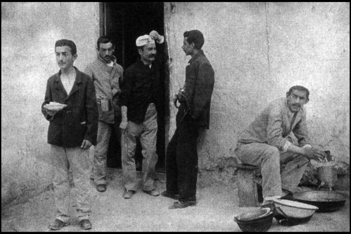 Şeref Kurbanlarından bir grup (Bulaşık yıkayan Yusuf Akçura, sırtı dönük ayakta duran Ahmet Cevat, elinde maşrapa olan Varşova Elçisi Ferit ile Ali Tevfik ve Saffet Tevfik kardeşler) (Kaynak: Cengiz Kahraman Arşivi, Mehmet Altun, ‘’Fizan Denen Şu Yer”, Toplumsal Tarih,S 125, Mayıs 2004, s. 27.) (Kaynağa ''Vatan ve Sıhhat, Tıbbiyenin Vatanseverliği'' kitabından ulaşılmıştır.)
