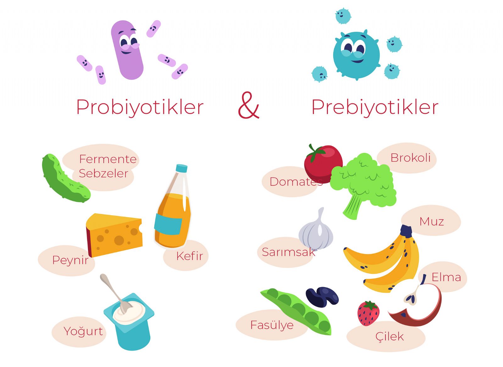 Probiyotikler ve prebiyotikler birlikte kullanıldığında “sinbiyotik” etki ortaya çıkar.