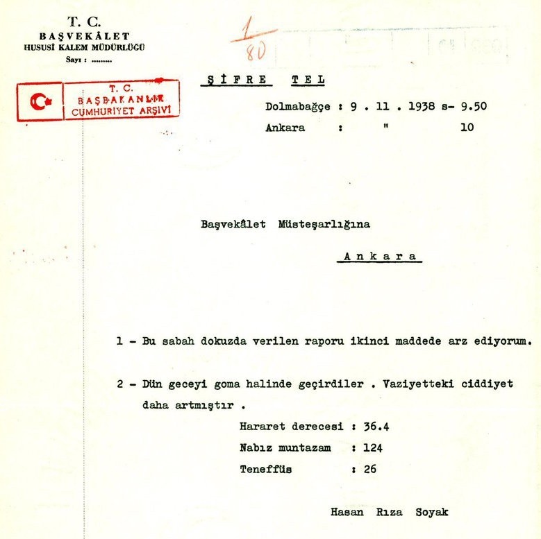 10 Kasım saat 9.05’te gerçekleşen vefat olayı sekiz hekimin imzasını taşıyan detaylı bir raporla saptanır.
