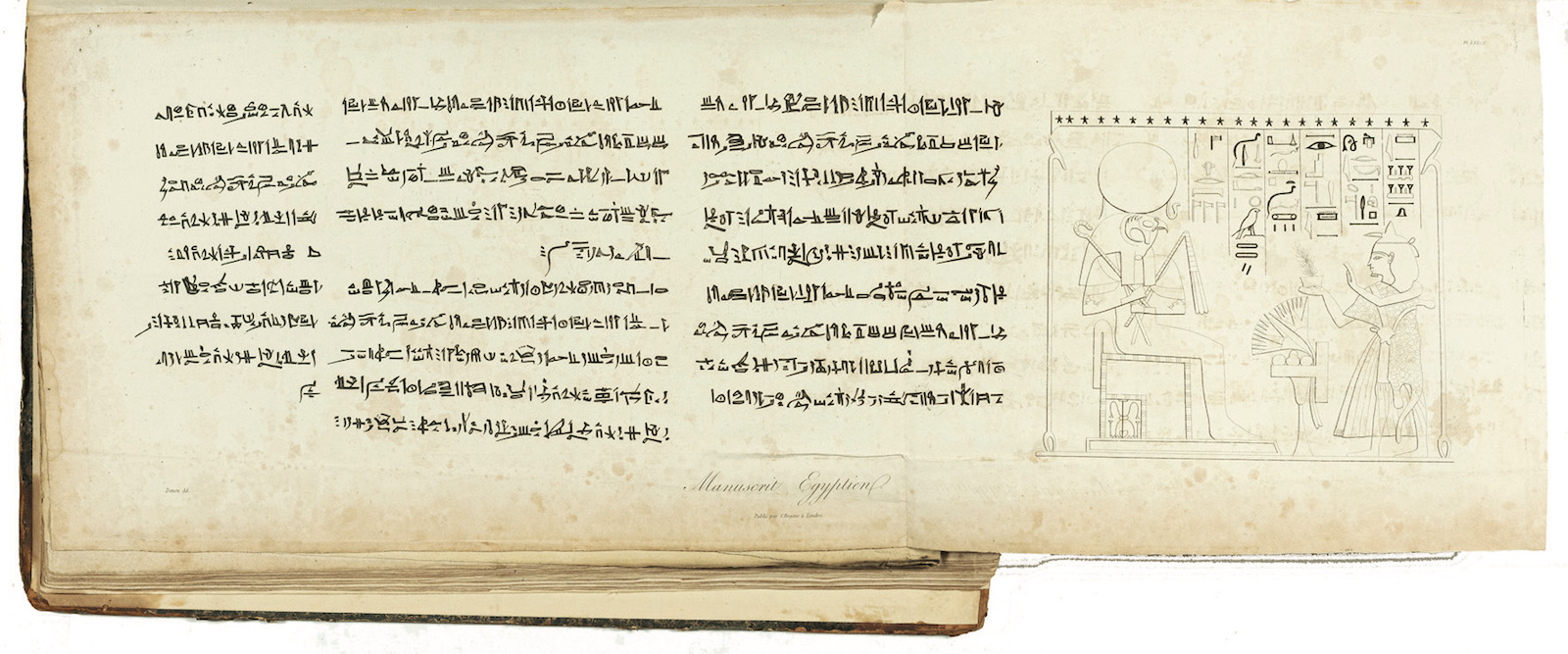 Yukarı ve Aşağı Mısır’a Yolculuk adlı kitaptan Mısır yazması sayfası. DENON 1802: D. Vivant Denon, Voyage dans la Haute et Basse Égypte, Paris, 1802, Pl. 138. (Bibliothèque d’Égyptologie du Collège de France). © P. Imbert, CDF. Fotoğraf: The Gourmet Gazette