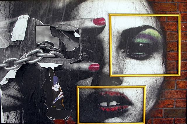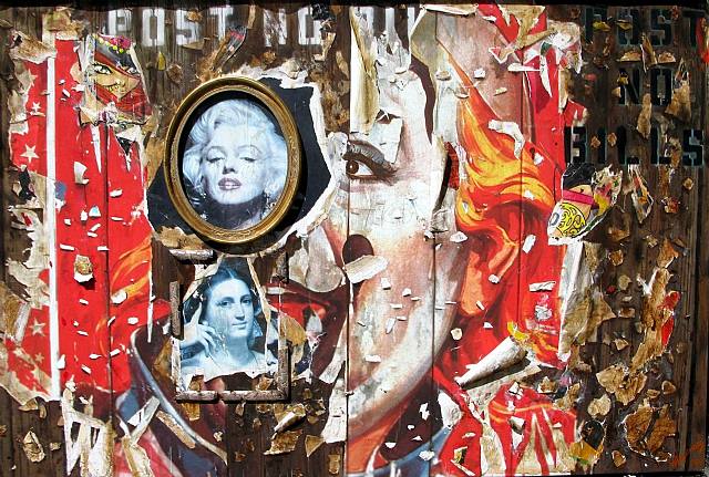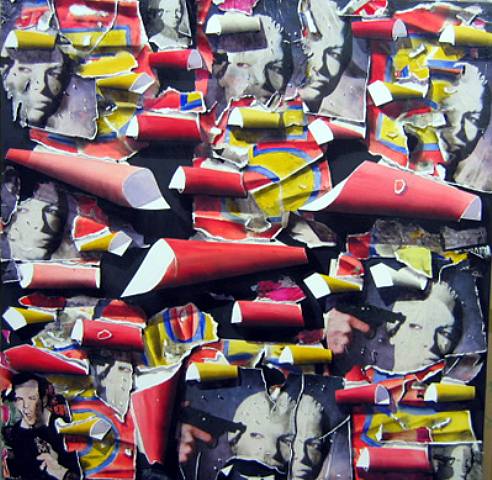- Afiş parçaları, gazete kupürleri, grafiti izleri, kablolar, bantlar gibi kentsel materyalleri eserlerine dahil eder.