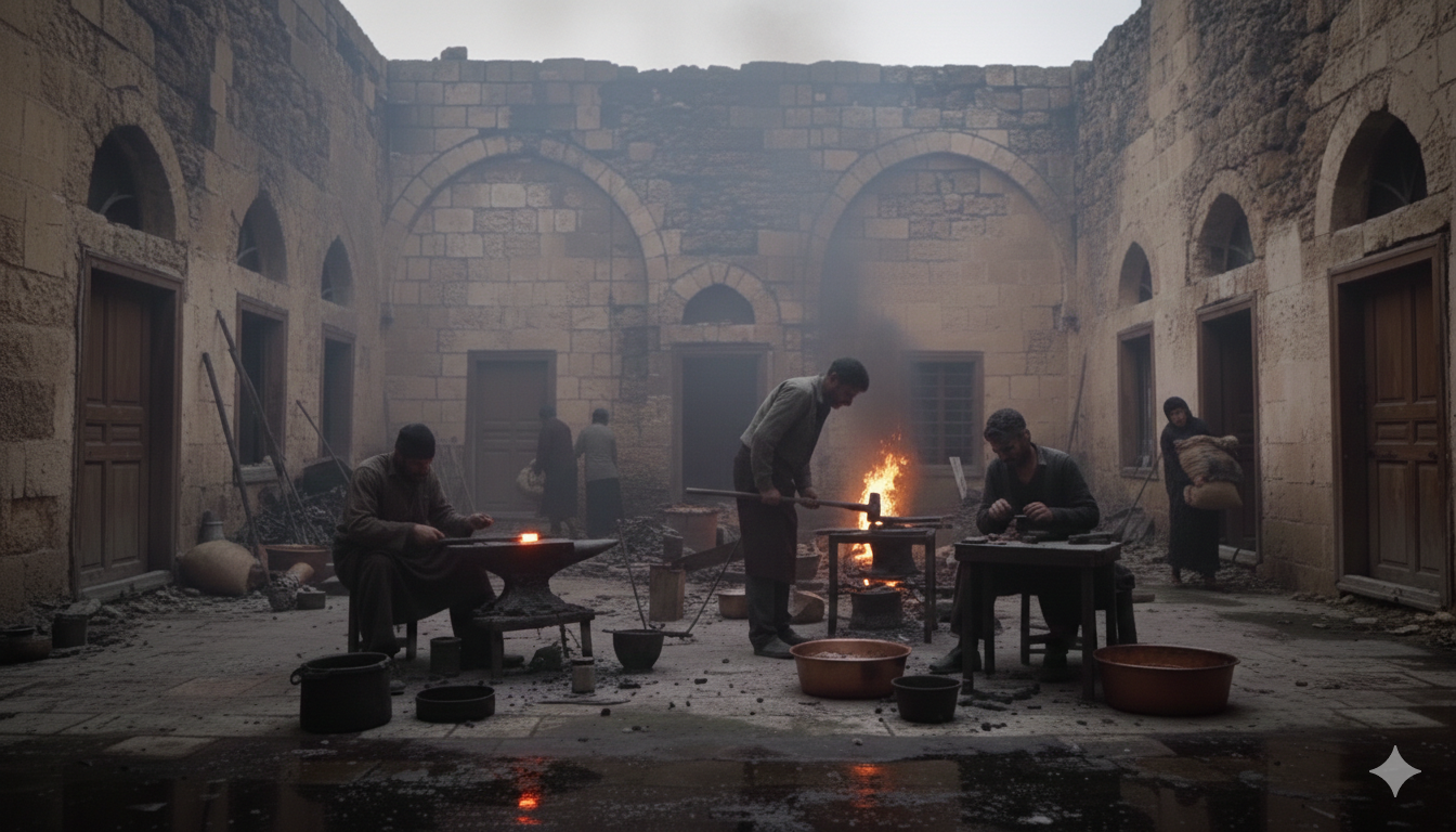 Bu süreçte cephanesi de tükenmek üzere olan Antepliler Sabun Han’da bir imalat-ı harbiye fabrikası kurdular. Demirci, dökümcü, kuyumcu ustaları kendi aletleriyle gelip ilkel şartlarda silah üretmeye koyuldular. Barut yoktu; söğüt ağacı kömürü, kükürt ve güherçile taşta dövülerek barut yapıldı. Yemek yenen bakır sahanlardan sahan bombası, patlamayan top mermilerinden bomba, kaledeki ramazan topundan araba tekerleği takılarak mermi atan top yapıldı. Kadınlar ve çocuklar yarı aç halde çalışıp imal edilen silahları cepheye taşıdılar.